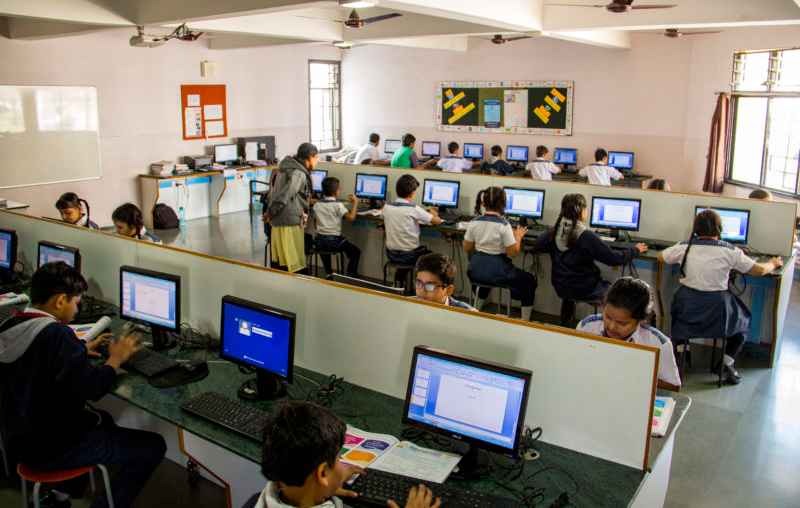 The School has rich computer laboratories with 100 computers in each lab accessible to students. It has advanced infrastructure in terms of hardware and software which cater to the requirements of the students, teachers and the curriculum. The school is equipped with a dedicated broadband Internet connection for enterprising students get a chance to be familiar with the Internet. They do comprehensive research for their projects and presentations.